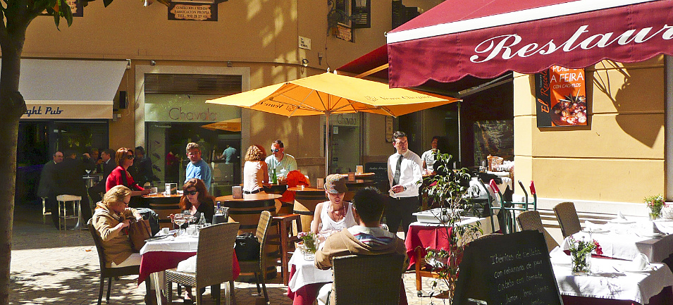 Is there a corner in Malaga without a café? In this mild Mediterranean climate streets are crowded with diners day and night. Old favorites: boquerones, tortilla, jamon Iberico and fresh clams can all be found all over the city. Some of the better places are hidden away in back streets and well worth seeking out. Others can be found at the beach cafés, 'Chiringuitos'.