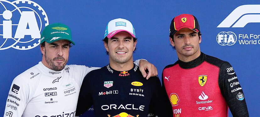 Spanish Formular 1 drivers Chico Perez, Fernando Alonso and Carlos Sainz.
