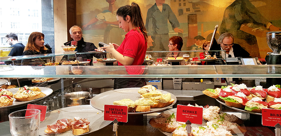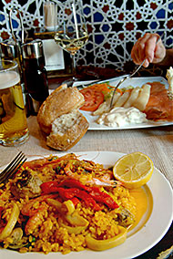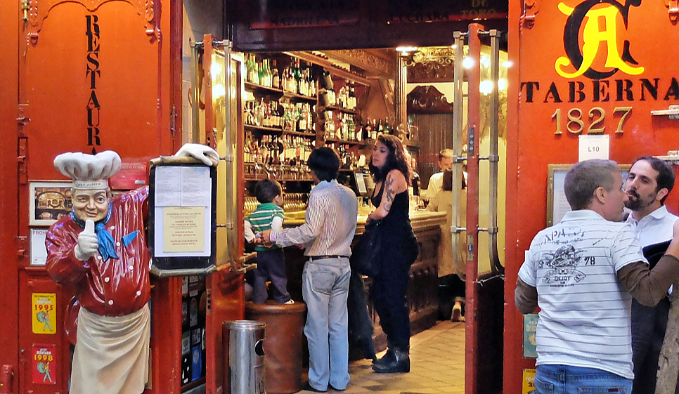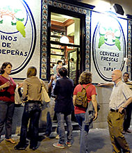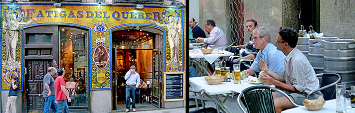 Madrid is bursting with tapas bars, old-fashioned cafés and smart international restaurants so you'll never go hungry. Tapas are a way of life, all day long and into the night. And there are often surprises, at La Fabrica tapa bar a customer brings his guitar and entertains the diners. |