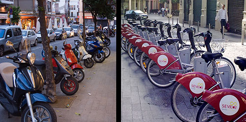 Narrow congested streets, expensive fuel and a mild climate help make transportation on two wheels one of the most popular ways to get around Sevilla.