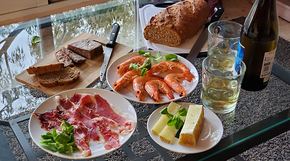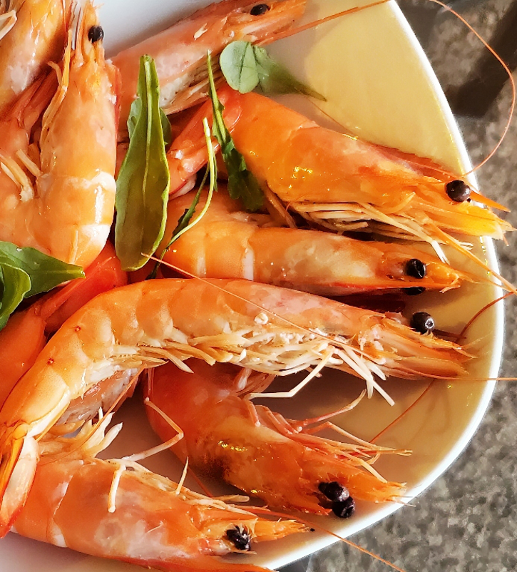Shrimp caught and cooked withing hours, a briny treat very different from frozen usually found in supermarkets elsewhere. |