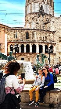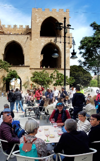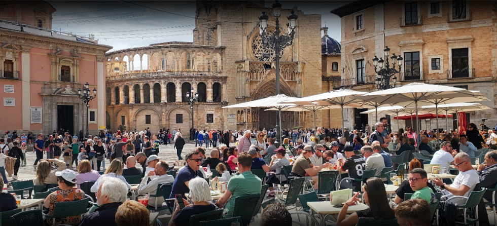 Tourists pack the famous Plaza de la Riena in Valencia