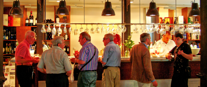 A late morning drink with friends at a neighborhood market before lunch at 2.