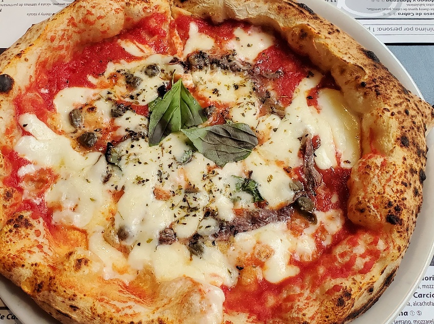 As popular as it is everywhere, piiza is a Spanish favorite. But usually simple like this, sauce, cheese with a little anchove and caper. |